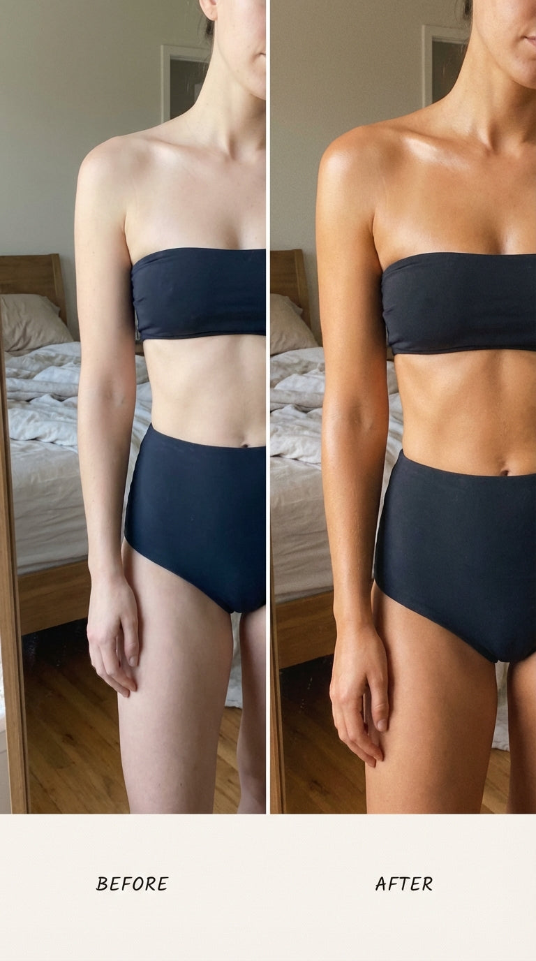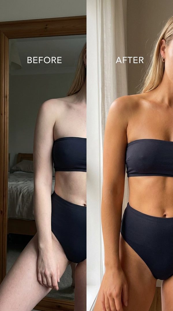 The fix was always this simple — a clean formula that goes on white, builds a warm bronze, and fades the way a real tan does.